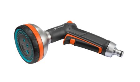 Το Πιστόλι Νερού Πολλαπλών Επιλογών Premium της GARDENA μπορεί να εκτελέσει όλες τις εργασίες ποτίσματος και καθαρισμού, προσφέροντας την επιλογή πέντε διαφορετικών τύπων εκτόξευσης: απαλό ψεκασμό, λεπτή ομίχλη, σπρέι φυσσαλίδων, πίδακα πίεσης και επίπεδο πίδακα. Το Πιστόλι Νερού είναι εφοδιασμένο με μεταλλικά στοιχεία στην κεφαλή ψεκασμού και τον σύνδεσμο, καθιστώντας το εξαιρετικά ανθεκτικό. Τα μαλακά πλαστικά στην κεφαλή πιστολιού ψεκασμού προσφέρουν προστασία από φθορές. Η εργονομική λαβή με μαλακά πλαστικά επιτρέπει τη βέλτιστη άνεση χειρισμού κατά τη λειτουργία. Η ροή του νερού μπορεί να ρυθμιστεί ελεύθερα. Για συνεχές πότισμα, η σκανδάλη διαθέτει κλείδωμα για να μην κουράζεται το χέρι σας. Το φίλτρο μπορεί να αφαιρεθεί και να καθαριστεί. Το Πιστόλι Νερού Πολλαπλών Επιλογών Premium διαθέτει ενσωματωμένη προστασία από τον παγετό.