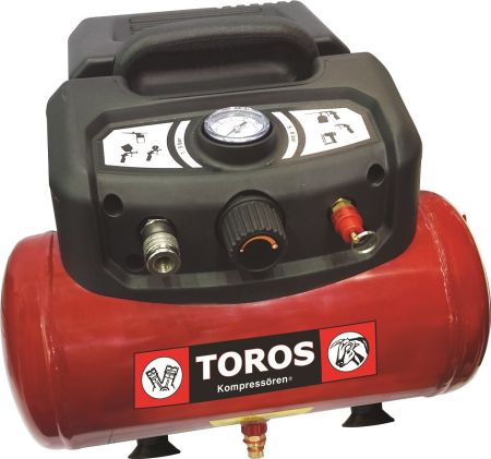 Αεροσυμπιεστής φορητός με αεροφυλάκιο 6Lt, κεφαλή OIL FREE (χωρίς λάδι), brushed motor (ψύκτρες), κατάλληλος για ελαφρές ερασιτεχνικές χρήσεις μικρής διάρκειας.