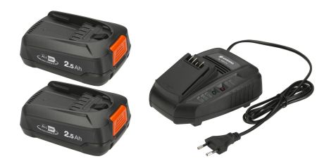 Δυνατότητα παραλαβής μέρα νύχτα από BOX NOW LockerΑυτό το σετ εκκίνησης αποτελείται από το γρήγορο φορτιστή GARDENA AL 1830 CV και δύο μπαταρίες ισχύος 2.5Ah του συστήματος POWER FOR ALL.