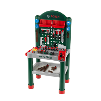 Ο πάγκος εργασίας σχεδίασης Bosch συνοδεύεται από πολλά εργαλεία και αξεσουάρ και έχει αμέτρητες διαφορετικές λειτουργίες και επιλογές παιχνιδιού για μικρούς τεχνίτες και γυναίκες